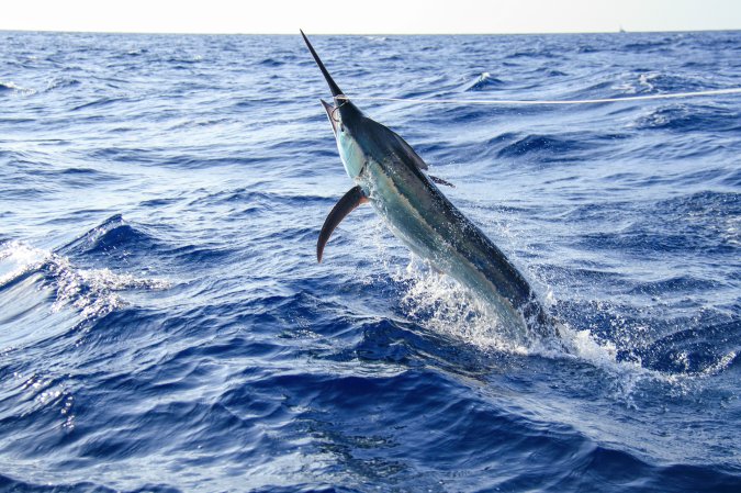 Just 10 minutes later, he heard a big splash behind him. Looking back, he saw a marlin leaping and trying to throw the hook. His rod was already bent double.