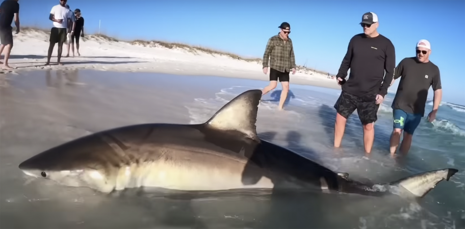 Several commenters have noted how uncommon it is to see a shark with piebaldism. The genetic condition is characterized by a lack of melanin, which causes pigmentation and gives animals their natural coloring. It’s seen throughout the animal kingdom, from horses and dogs to black bears and deer. And while it’s rare in wild populations, hunters see (and sometimes harvest) piebald whitetails every fall.