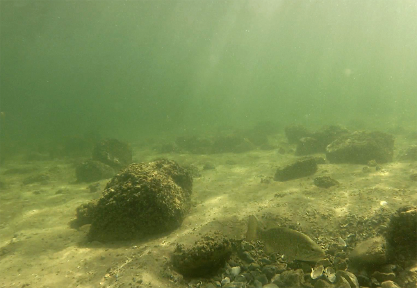 As an example, if you see just two or three isolated lily pads in the middle of what appears to be a barren flat, cast at them. If there’s a lone sticking poking out in a cove, hit it. You’d be surprised how a slight difference like a small depression, a thin patch of weeds, or a lone log in a featureless area can create enough of an ambush point to hold a big bass.