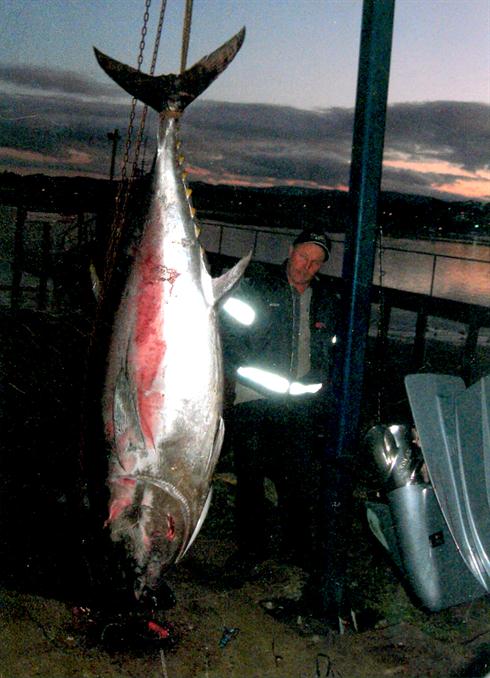 Tim Simpson holds the all-tackle world record with a 79-pound, 2-ounce longtail tuna caught April 12, 1982 off Montague Island in New South Wales, Australia. The fish was 57.08 inches long with a 34-inch girth. Simpson was fishing with a custom rod and a Penn International 50 6/0 reel spooled with 15-kilogram Erskine K line. He was drifting a scad bait when the longtail bit.