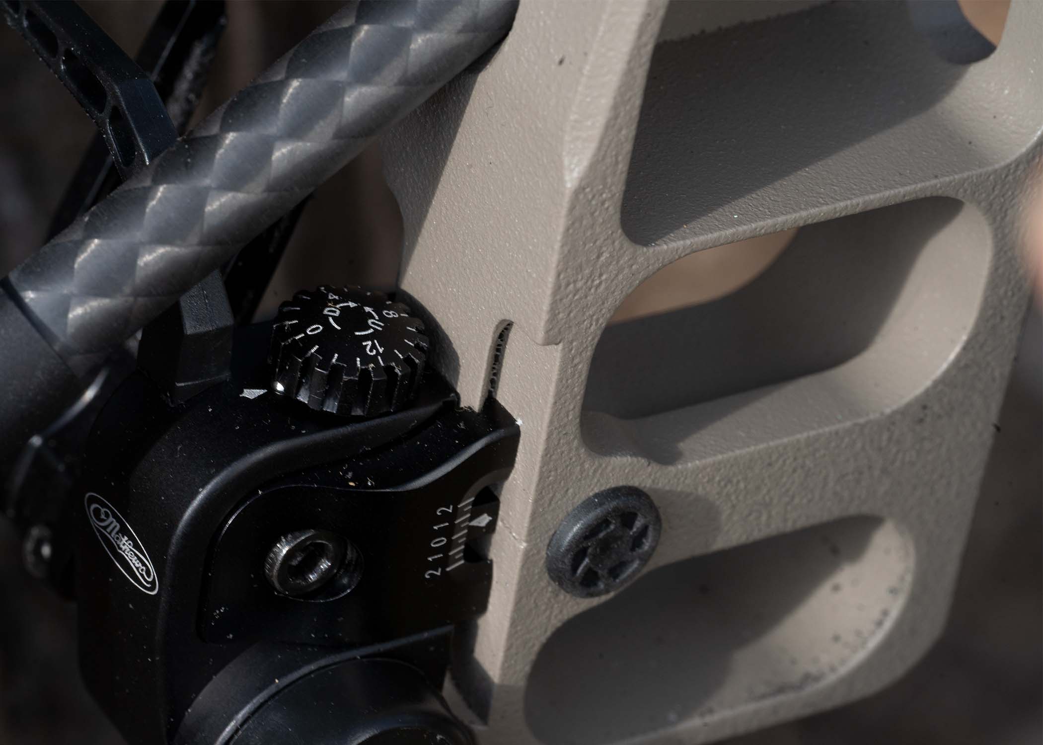 We tested bows on cold January days in Lancaster, Pennsylvania, but gripping this carbon bow was a pleasure during those temps. The Levitate’s grip is square, ¾ inches wide, and flat with beveled corners. It’s a comfortable grip that’s easy to shoot well.