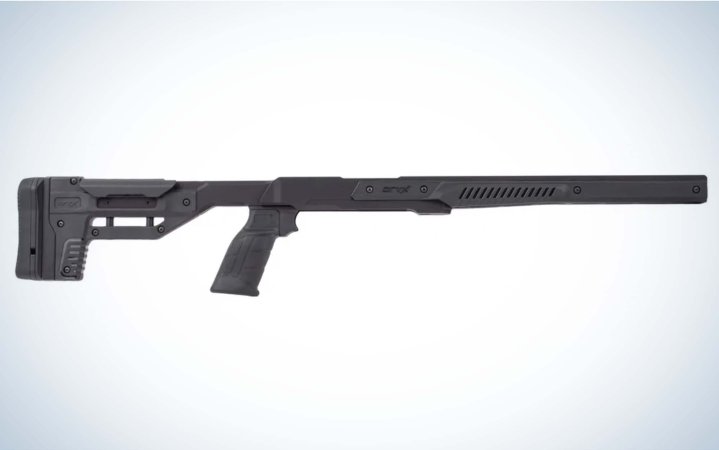 This is the highest-quality replacement stock we tested and has a price tag to match. But what you get for that money is a chassis with an aluminum bedding block that creates a rock-solid connection between the action and stock.