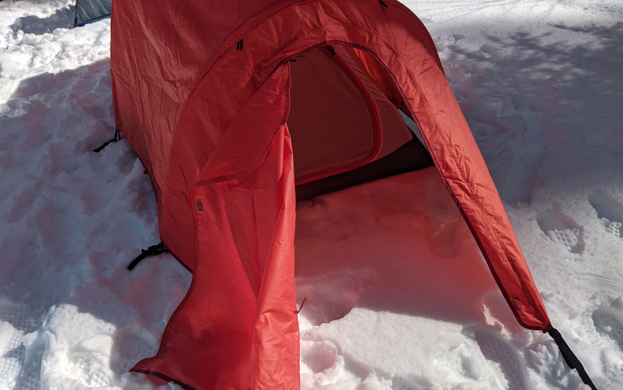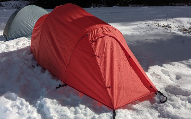 I’ve used non-freestanding tents for backpacking for years, but never for winter camping. In my experience, it’s basically inevitable with a non-freestanding tent that at some point one of your stakes is going to get kicked up by an unusually strong gust of wind—if that happens to enough stakes your tent collapses on you and you need to spend a few minutes outside dealing with the situation. The more you use your tent, of course, the less this happens, but it can be a steep learning curve.