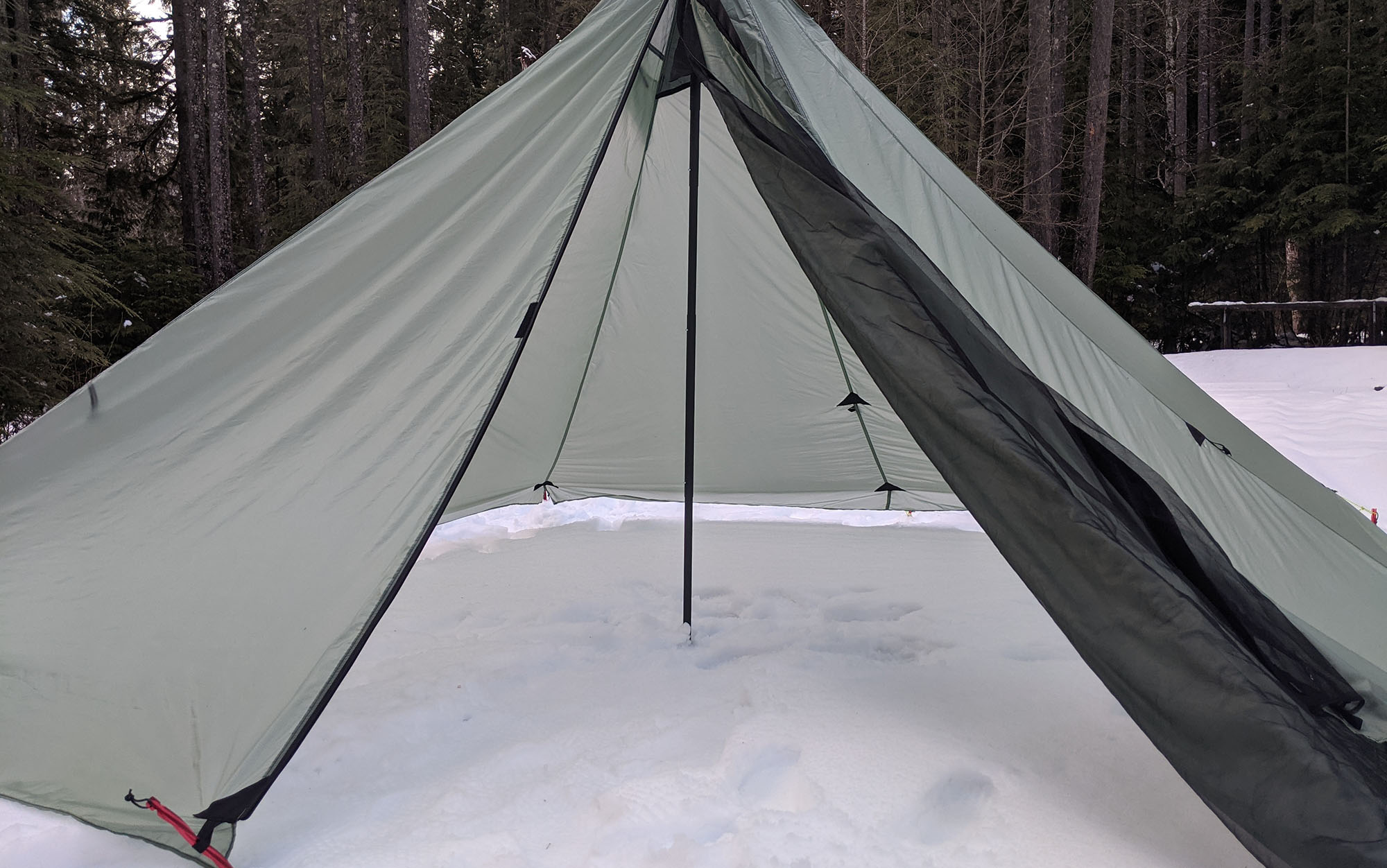 The only catch here is that condensation inside this winter tent can get pretty serious if the windows are rolled up. On an overnight when temps dropped into the low twenties my partner and I woke up to find the body of the tent soaked to the touch (with the exception of the foot of our camping quilt, our gear was dry). I had the top window open, and part of the door, but in the future I would likely leave all of the windows open to prevent excessive buildup of moisture.