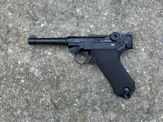 Among a crowd of high-quality, truly awesome replica BB guns in this test, there probably isn’t a better value than the P08 Luger from Umarex. This copy of the iconic German pistol is hefty, well-made, and cycles like a real Luger does. The removable magazine houses both the CO2 cartridge and a spring-loaded stack of 21 BBs. When inserted, the shooter pulls back on the round cocking tabs, releases, and it’s ready to go. The bolt will cycle back, and the linkages will rotate up and return down with each shot — just like the real thing. This really eats up CO2 cartridges quickly, but I found it to be a great shooting BB pistol.