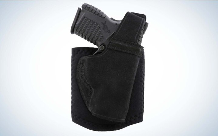 The Sticky Holsters Ankle Wrap isn’t a holster itself, but is designed to be used in conjunction with any of their fabric holsters. Sold separately, the holster itself is made of fabric with a tacky outer layer that grips clothing to prevent movement. They come in a variety of sizes to accommodate different handguns, and can be used in the pocket, waistband, or worn on the ankle with the ankle wrap. They’re light, secure, versatile, and affordable.
