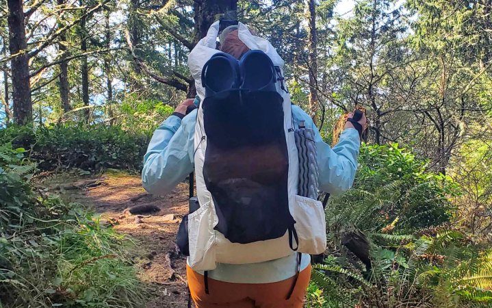This turned out to be at odds with both Helmuth’s and Ross’s experience. While Helmuth was out on an overnight to the Carbon River in Mount Rainier National Park, she found that when the load lifters were loose, the weight of the pack settled on her hips, but when she cranked them down to help move the weight to her shoulders, the top of the pack would hit the top of her head. Ross reported that her smaller physical stature made this one-size-fits-all backpack even more of a no-go. “The internal frame of the backpack hit the back of my head at such an uncomfortable spot that I turned my overnight backpacking trip into a day hike,” she says. Ross also found that the weight in the pack kept unbalancing while she was out testing, so that the pack repeatedly tipped to one side.