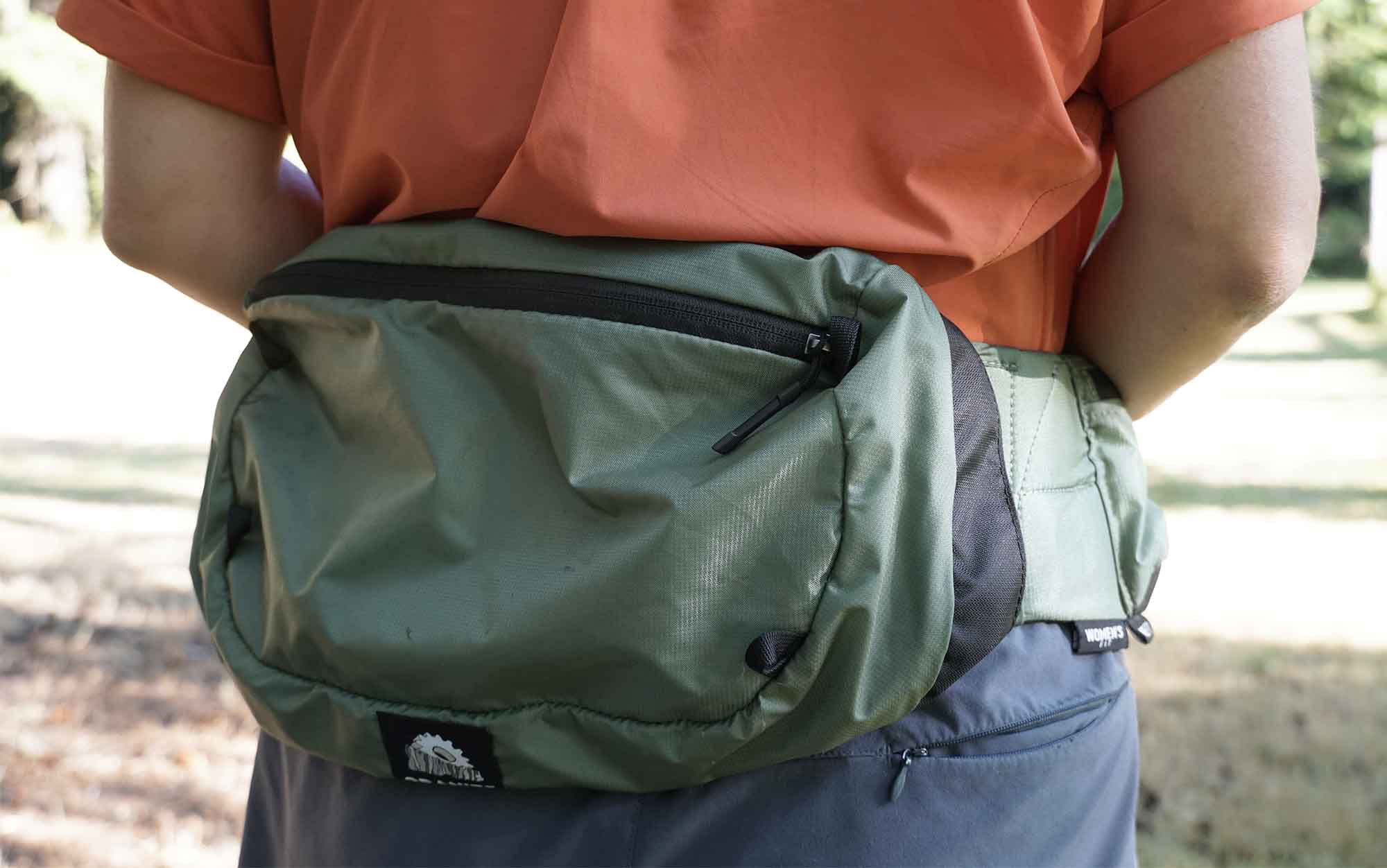 - Pockets: Two hip belt pockets, two side pockets, back mesh pocket