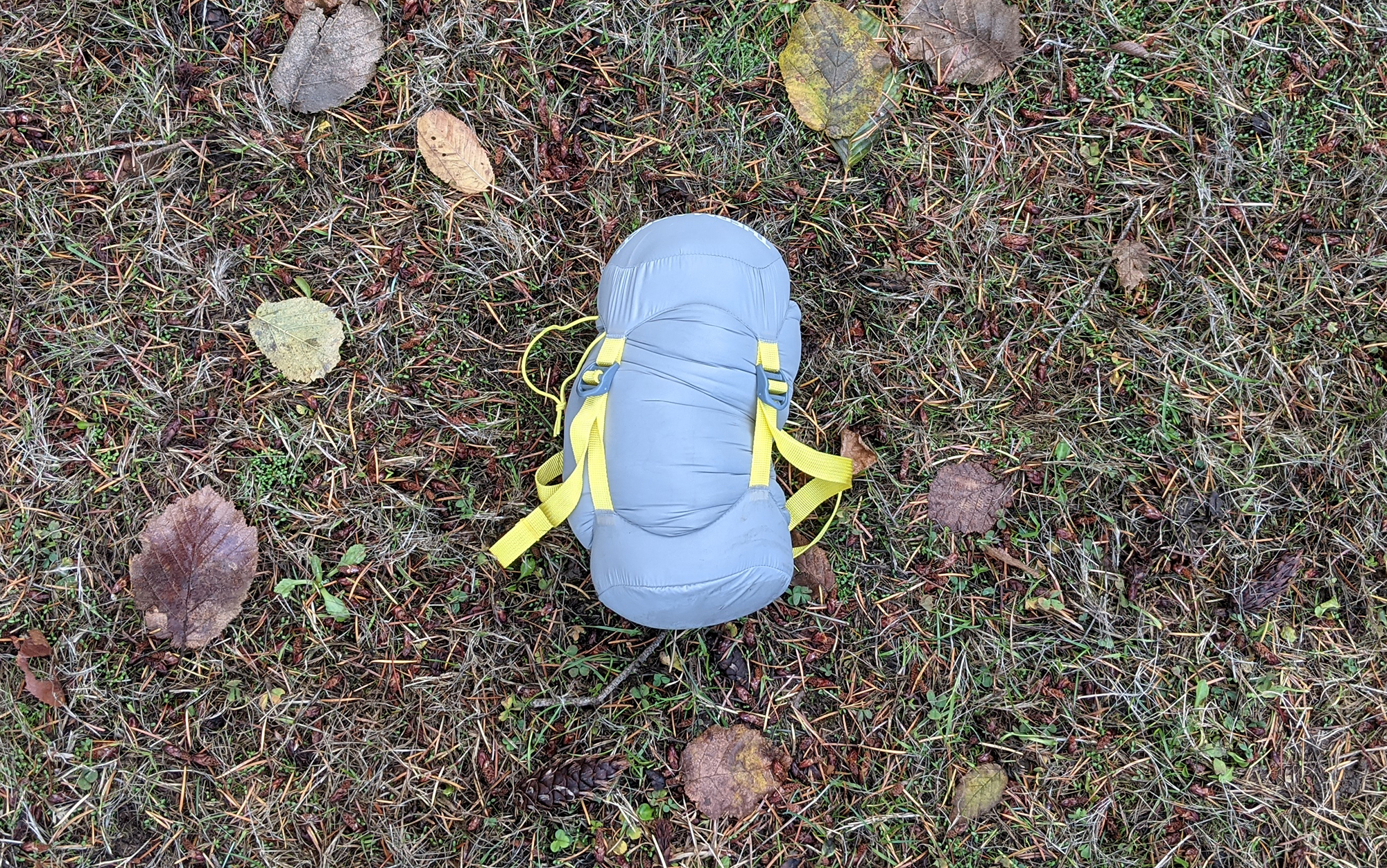 Something unusual about the Therm-a-Rest Vesper is that it incorporates compression straps into its stuff sack design. While this ostensibly allows you to compress your quilt down into the smallest possible package, this compression sack is an ounce heavier than the best-in-class stuff sack that comes with the Zpacks Solo Quilt. We recommend either replacing this or dispensing with the sack entirely and stuffing your quilt loosely at the bottom of one of the best ultralight backpacks.