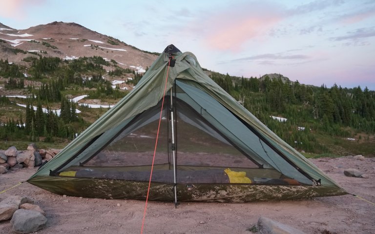 It was the only non-freestanding tent that was set up in the exposed alpine area on our third night of testing in the Goat Rocks Wilderness (the other three trekking-pole tents were set up among the trees). The tester, Top Shelf, reported that it stayed up fine, although there were some hiccups along the way given the less than ideal staking-out situation. “It felt homey, spacious, and super storm-worthy,” she noted. Robinson, who tested it on the final night when we were camped in muggy conditions near a pond, reported no condensation.
