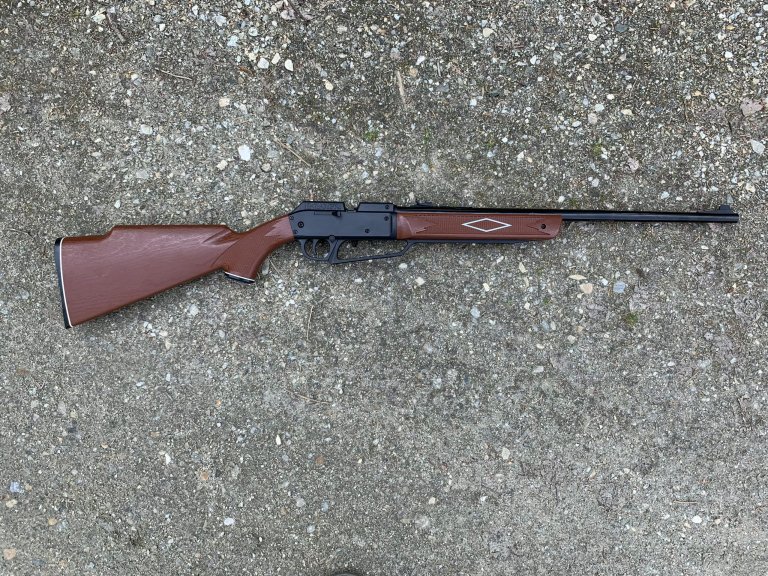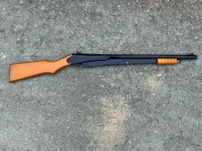 Another staple of my childhood was the Daisy 880, which has been around since the early 1970’s. It’s a classic BB/Pellet pneumatic pump rifle that has a Monte Carlo-style stock, white accents, and molded checkering that give it a 1960’s Winslow-like look—though it’s not overly flashy. The bulk of this rifle is plastic, like others in its price range, but it’s been an essential companion to many young country kids. It feeds BBs from a hopper in the side of the receiver area, but shoots them pretty terribly. Like other BB guns of this style, especially those with rifled barrels, BBs are sent spinning off in unpredictable directions. However, it does print tight groups with pellets.