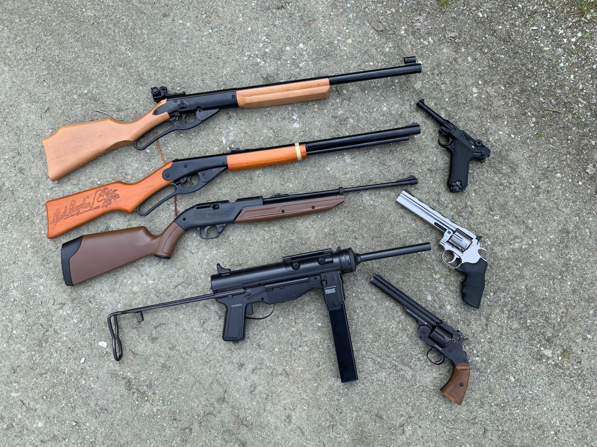 If you’re trying to learn basic marksmanship, BB guns like the Adult Red Ryder, or Daisy 499B Champion are great options. If you’re looking for something fun, realistic replicas like the Barra Airguns Schofield Revolver or Umarex M3 Grease Gun are great choices.