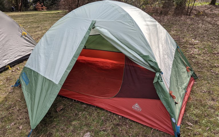 While the Kelty Discovery Trail 2 lacks the second door that you would expect with a two-person tent, it did have the rest of the full suite of features I would expect: roomy vestibule, guylines with extra stakes, vents along the rainfly, and pockets for storage in the interior. Consider purchasing the Kelty Discovery Trail footprint to accompany this tent, as it did pick up a couple of very small holes during the abrasion test. Finally, the Kelty Discovery Trail 2 weighed just under five pounds during testing.