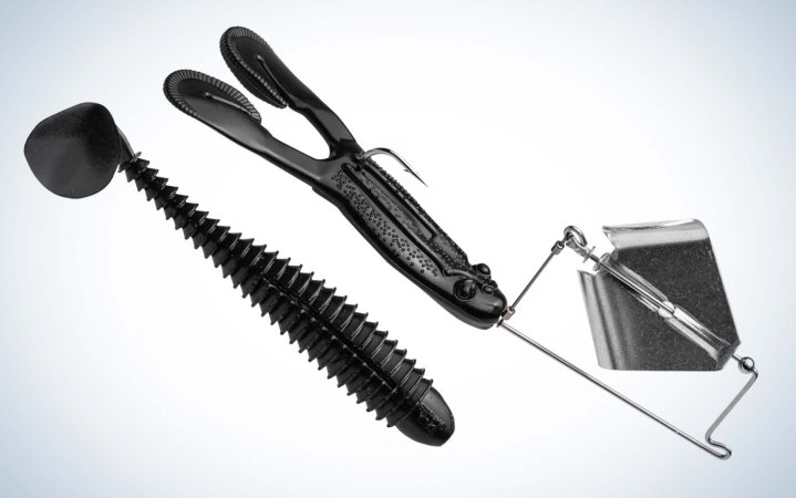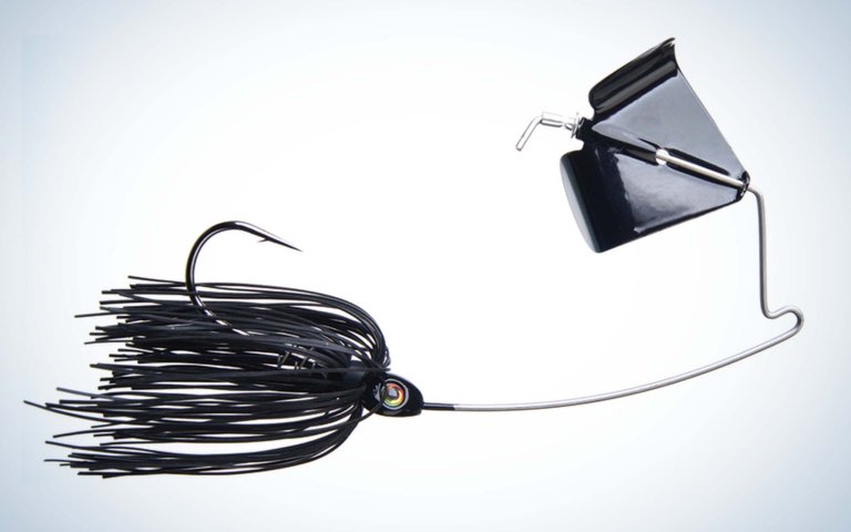 There are times when two blades are better than one, but lots of the double buzzers that I’ve tried never seem to have the right gap between blades, or eventually fail to run correctly. However, this one from Buckeye is super-durable. It has an amazing combination of calling fish from a distance and triggering ambush feeders. It’s excellent in slightly dirtier water, but don’t discount it in crystal-clear conditions. The long shank hook catches short-strikers, but I typically add a trailer hook. A single-blade model may be better in the thickest cover, but you’ll be surprised at how well this skirts grass and weeds. I like the shad color around the shad spawn, and a black skirt/blade combo in dark and stormy conditions.