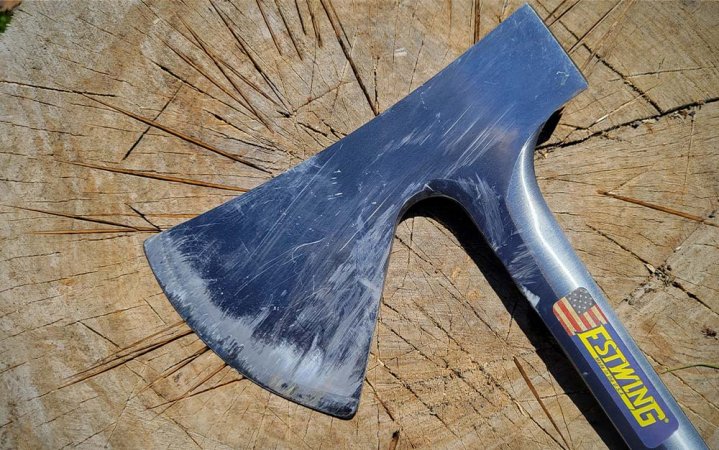 As far as maintenance, it only needs sharpening. But, the Estwing has a long, thin bit because it doesn’t have to wrap around a handle, and this makes it less than ideal for splitting seasoned hardwood. If you took some time to sharpen this ax, it would pay dividends in splitting and cutting performance because the factory edge leaves something to be desired. But, if you are looking for an ultra-tough, basically maintenance-free ax, the Estwing Campers fits the bill.