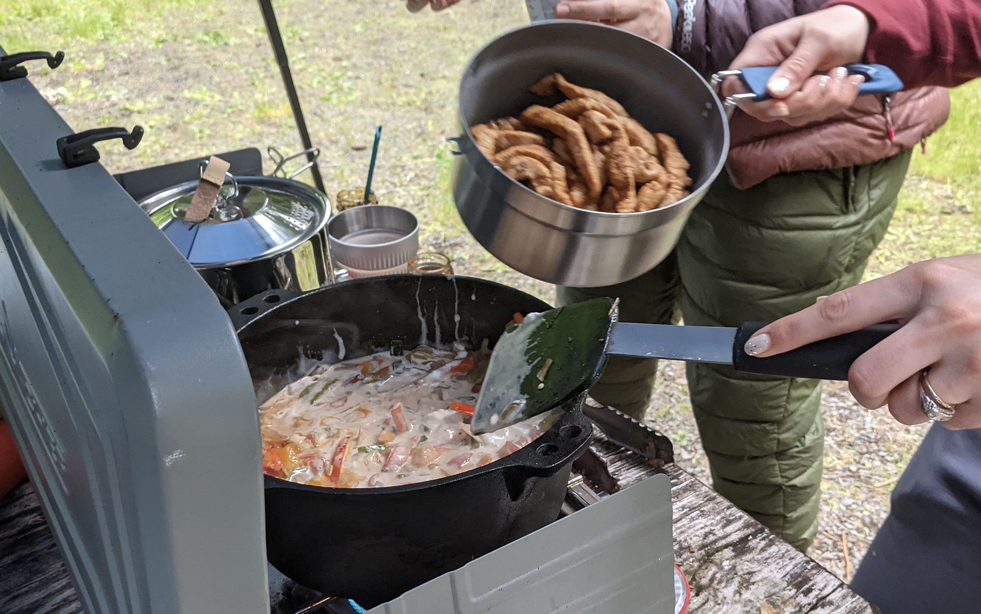 My second test of the best camping cookware took place on a group trip for Memorial Day weekend. I brought an assortment of camping cookware sets from the likes of Primus, Sea to Summit, GSI, Decathlon, and Snow Peak. I asked the people in my group to try out different cookware and to report back on how easy or difficult it was to use. Additional considerations included durability (both tested and inferred) as well as how easily they packed down and their price point.