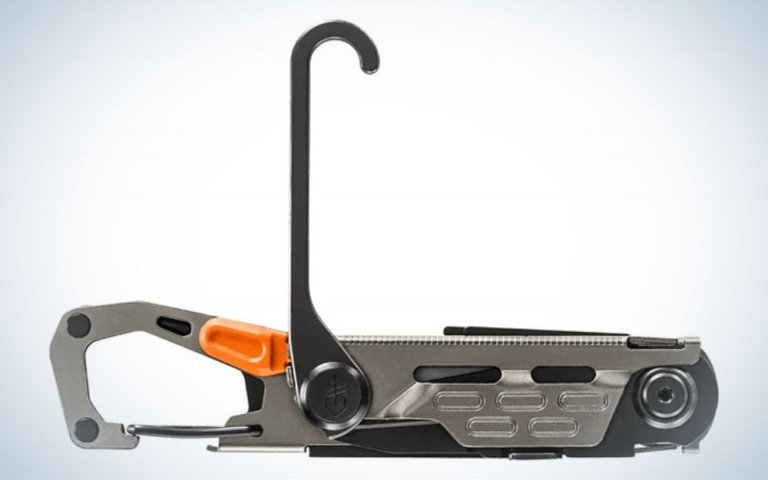 This camping gadget is one of the newest tools from Gerber, and I really dig some of the unique features and all the tools packed into this 3.3-ounce package. The whole package has a gate clip carabiner that can clip to your bag, belt, or anything you want it to.