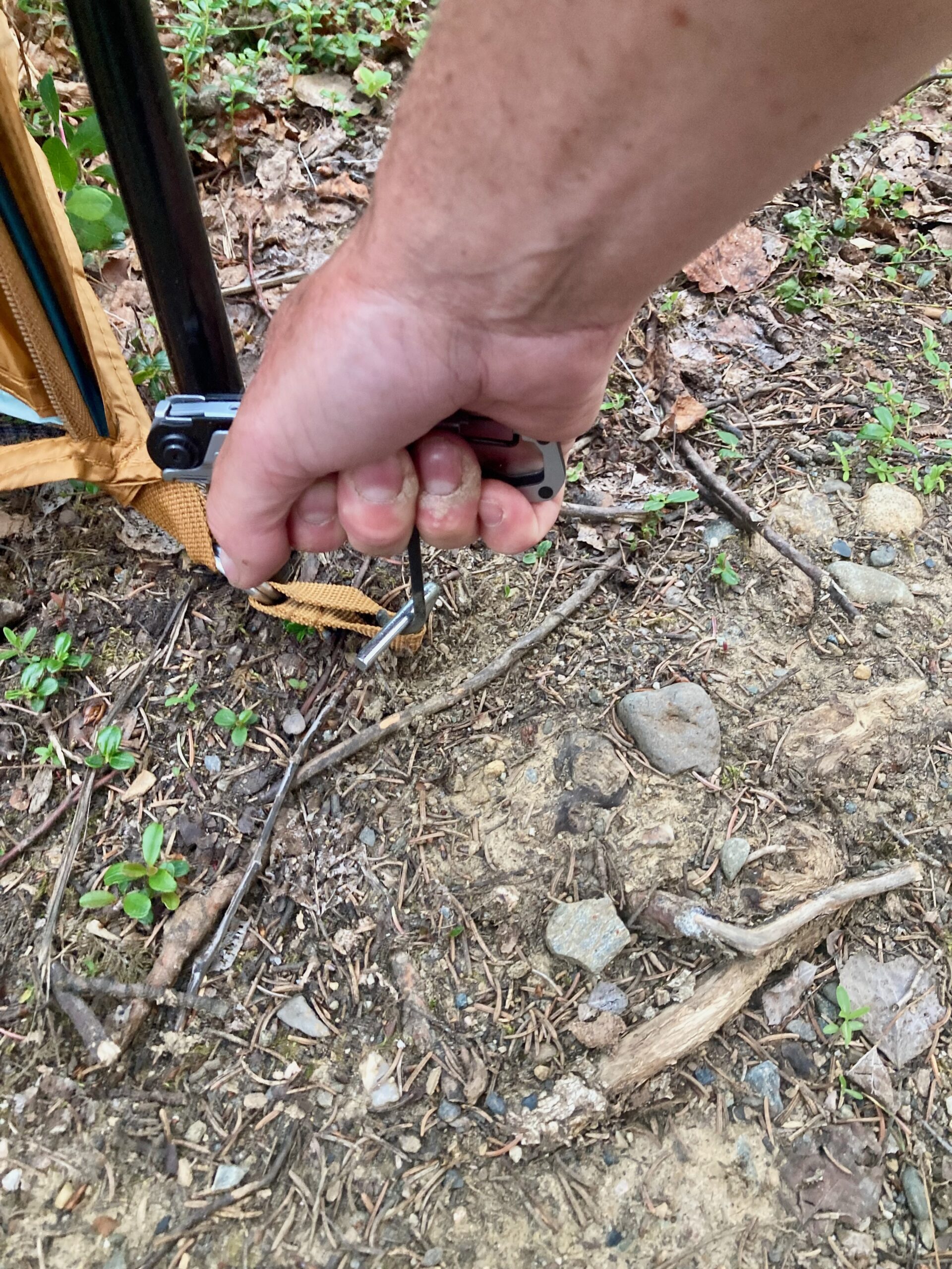 Another feature that stuck out to me compared with other multitools is the “tent stake puller.” I never thought I would need a tool to pull out stakes, but as soon as I used it, I couldn’t go back to my old methods of kicking the stake to loosen and using my hand. The J-hook tool folds out directly from the handle in the middle of the tool,