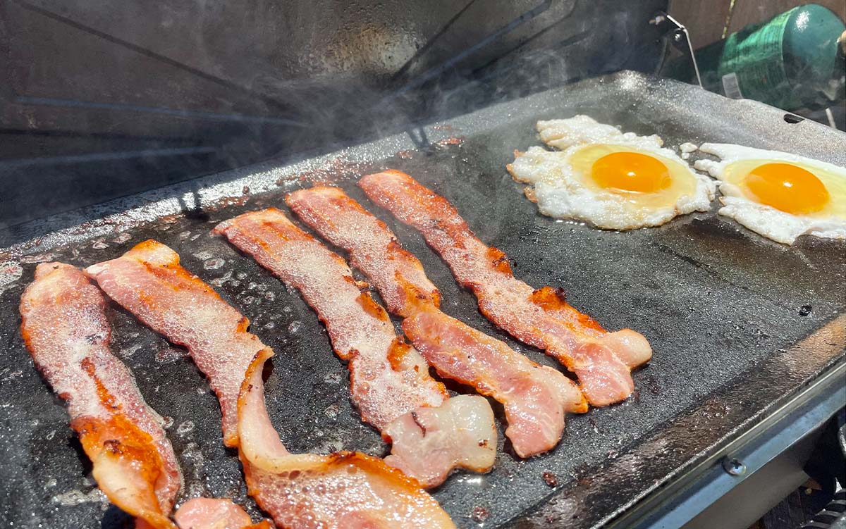 If you plan on cooking bacon for a crowd, then grease containment will be an issue. Some of the tested griddles, like the GSI Outdoors model, have high sides that will keep the grease contained inside the griddle. Others, like the Coleman HyperFlame, have a built-in tray that allows the grease to drain as it cooks.