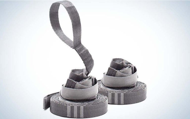 Good news: there’s no rope tying required to hang a camping hammock if you use a suspension system. Even better, they also do a better job than rope of protecting trees from unnecessary damage. To minimize the amount of webbing that cuts into tree bark, Leave No Trace principles recommend using straps made of webbing at least 1-1.5-inches wide.