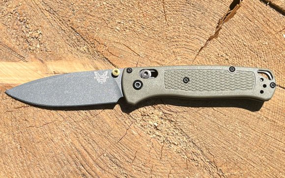 The Bugout also features Benchmade’s Axis lock allowing you to unlock the knife ambidextrously by simply toggling a spring loaded button. No nail breaking or finger pinching underneath the blade to push in a too-tiny metal liner lock is necessary. A light and durable thermoplastic called Grivory makes up the handle. While it isn’t the most comfortable grip, it is lightweight with plenty of traction.