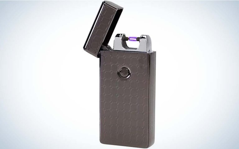 The UST TekFire is a beefy, 2.1-ounce lighter and flashlight combo perfect for any outdoor adventure. Powered by a USB-rechargeable lithium-ion battery, I charged this years ago and have not needed to charge it since, all while using it a couple of times a month. Two clicks of the button will turn the light on or off, and pressing the button (with the lid flipped) will ignite the arc. The wire safety latch secures the lid, eliminating the worry of it flipping opening in your pocket.