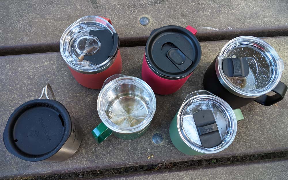 Great camping mug lids share three traits: they are comfortable to drink from, they don’t leak or spill when tipped or shaken, and they help to insulate the contents of the mug itself.