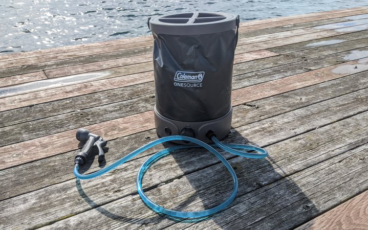 For campers venturing out during the dog days of summer, a hot shower isn’t always necessary (or even desirable) but getting a strong spray is. Since there isn’t an accompanying water chamber for the Ivation Battery-Powered Portable Shower, and thus no way to heat up the water, you’ll need to supply a DIY reservoir of your own. A plastic bucket works great for this purpose, and gives you more flexibility with how much water you’re setting aside for your shower.