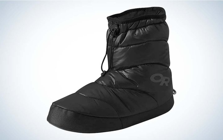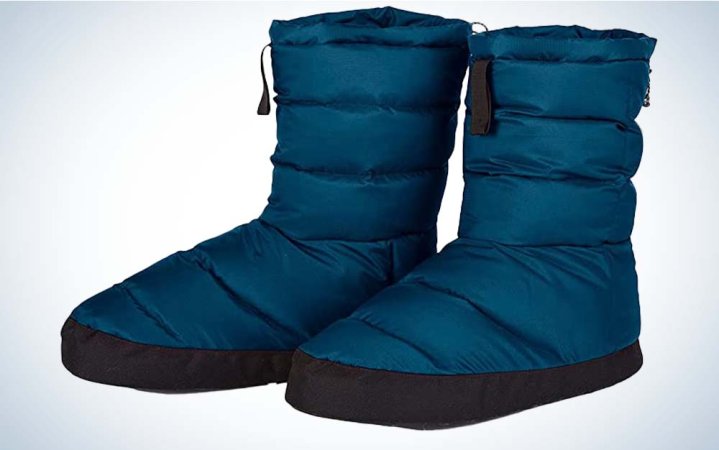On top of that, every aspect of their design is thoughtful. The down is plush but easy to roll up and pack. Their roomy fit is naturally comfortable, but the cinch cord allows you to create a snug fit. And the sole grip on the bottom felt stable and secure when I walked over rocks and sticks. Out of other camping slippers I tested, these seemed to bring a level of warmth and comfort my cold feet could appreciate.