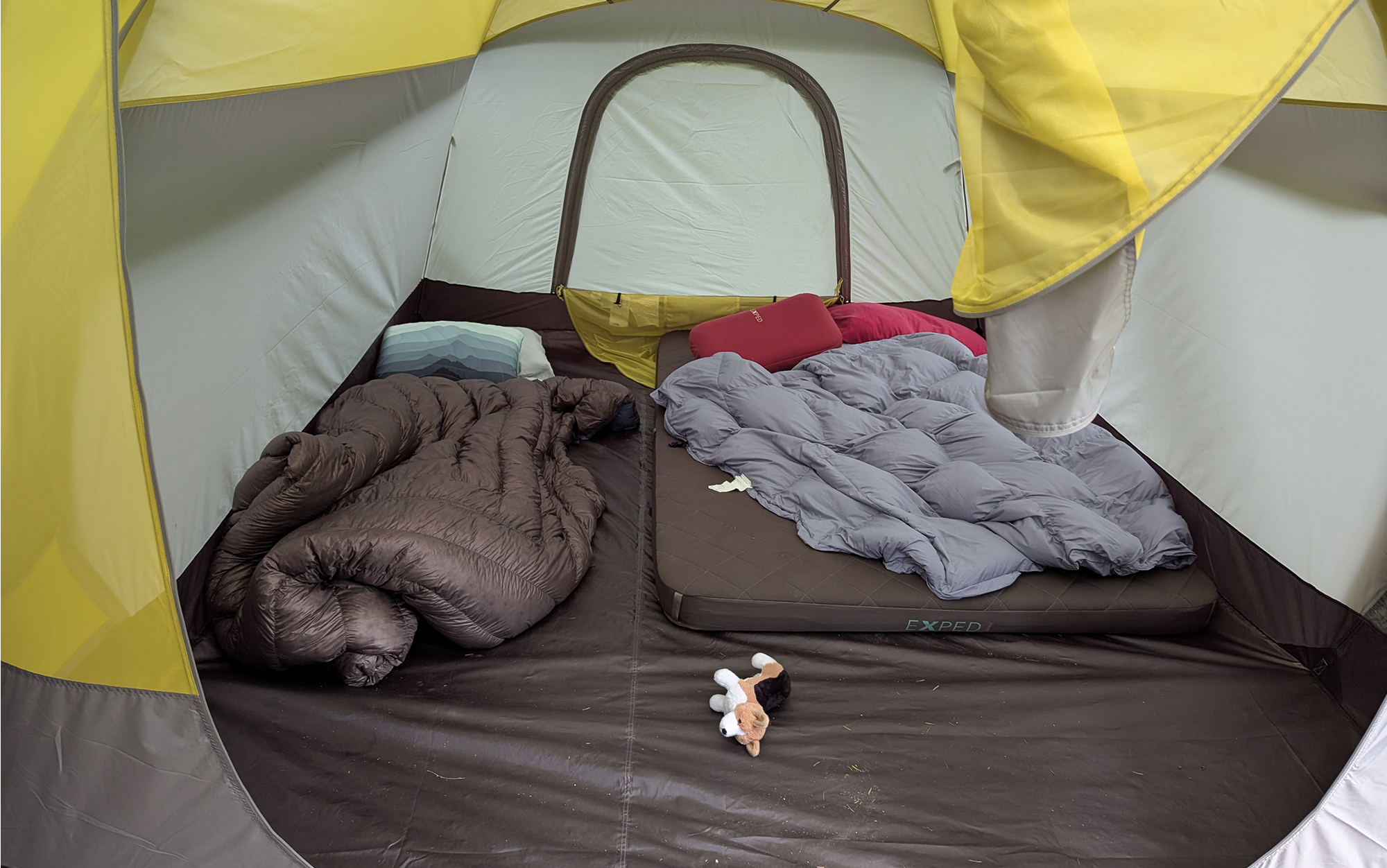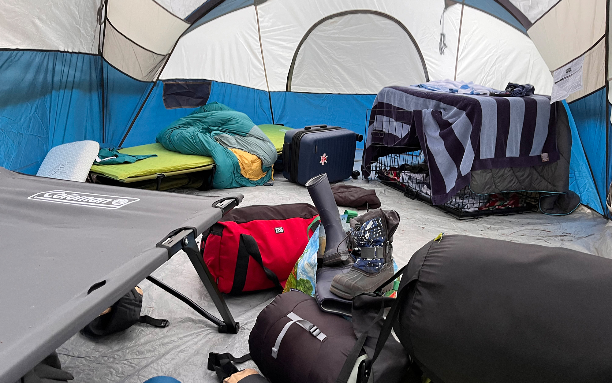 Despite being a 10-person tent, there is only one door for this tent, and only two storage pockets. The family that shared this tent — three individuals and a dog — noted that this was a bit of a pain, especially if you have eyeglasses that you want to tuck somewhere safe when you get into bed.
