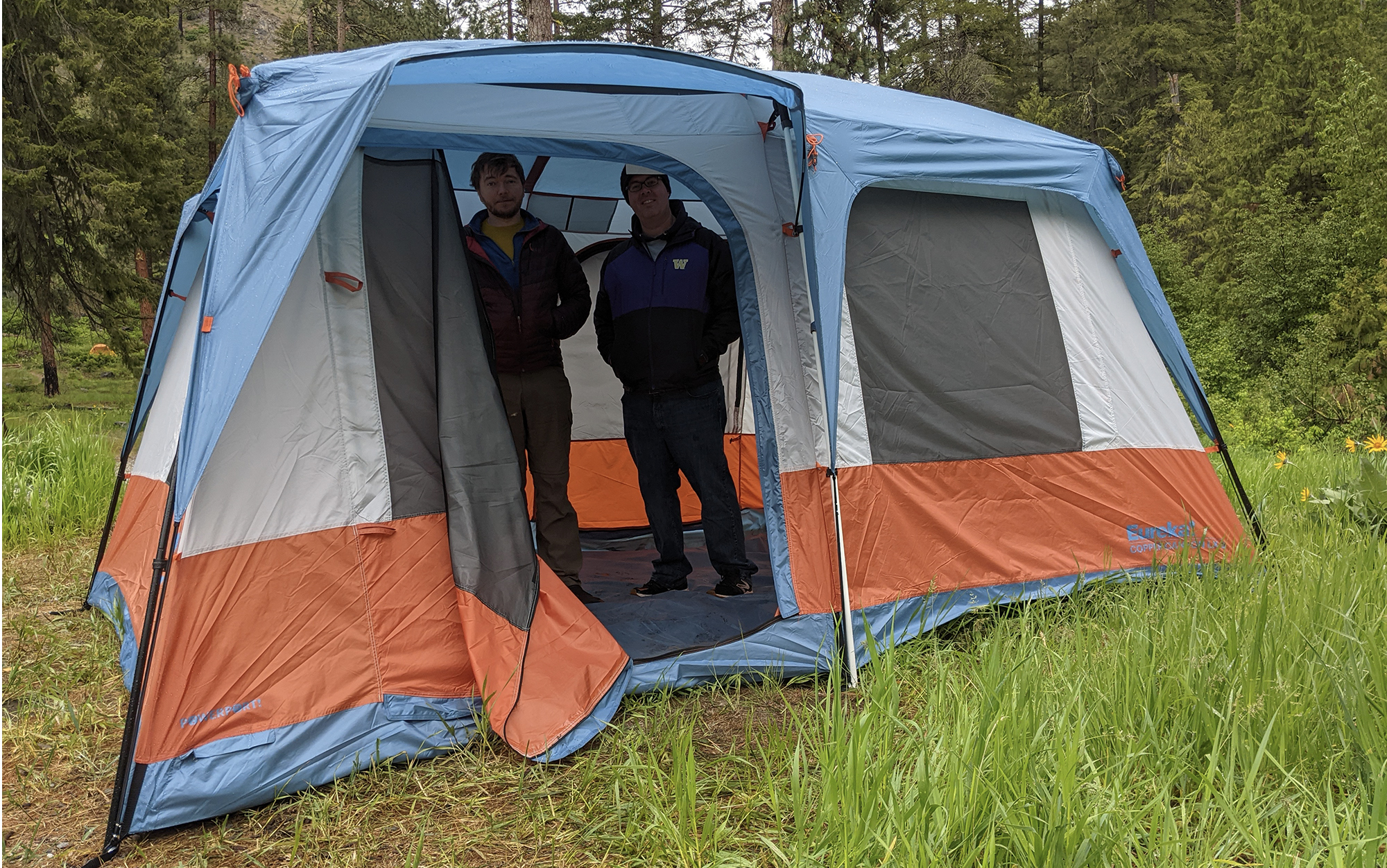 We were beyond bummed to learn that Johnson Outdoors was discontinuing Eureka, makers of one of our favorite large tents. But the good news for you is that you can still find the Eureka Copper Canyon, at least until they run out of stock. Our testers have found that this one has excellent head height and is surprisingly resistant to rain, even when tents twice its price sprung a leak during testing. (We did find, however, that you need to strap the rainfly velcro around the poles if you anticipate moderate winds.) I had a family of three with a pup test this one during a long weekend and they reported that the eight-person version was very spacious for three cots and a dog crate. Multiple 6-foot-2-plus individuals were able to stand up inside this tent at the same time. Get this one now, as the steep discount it’s on will be gone forever once the stock runs out.