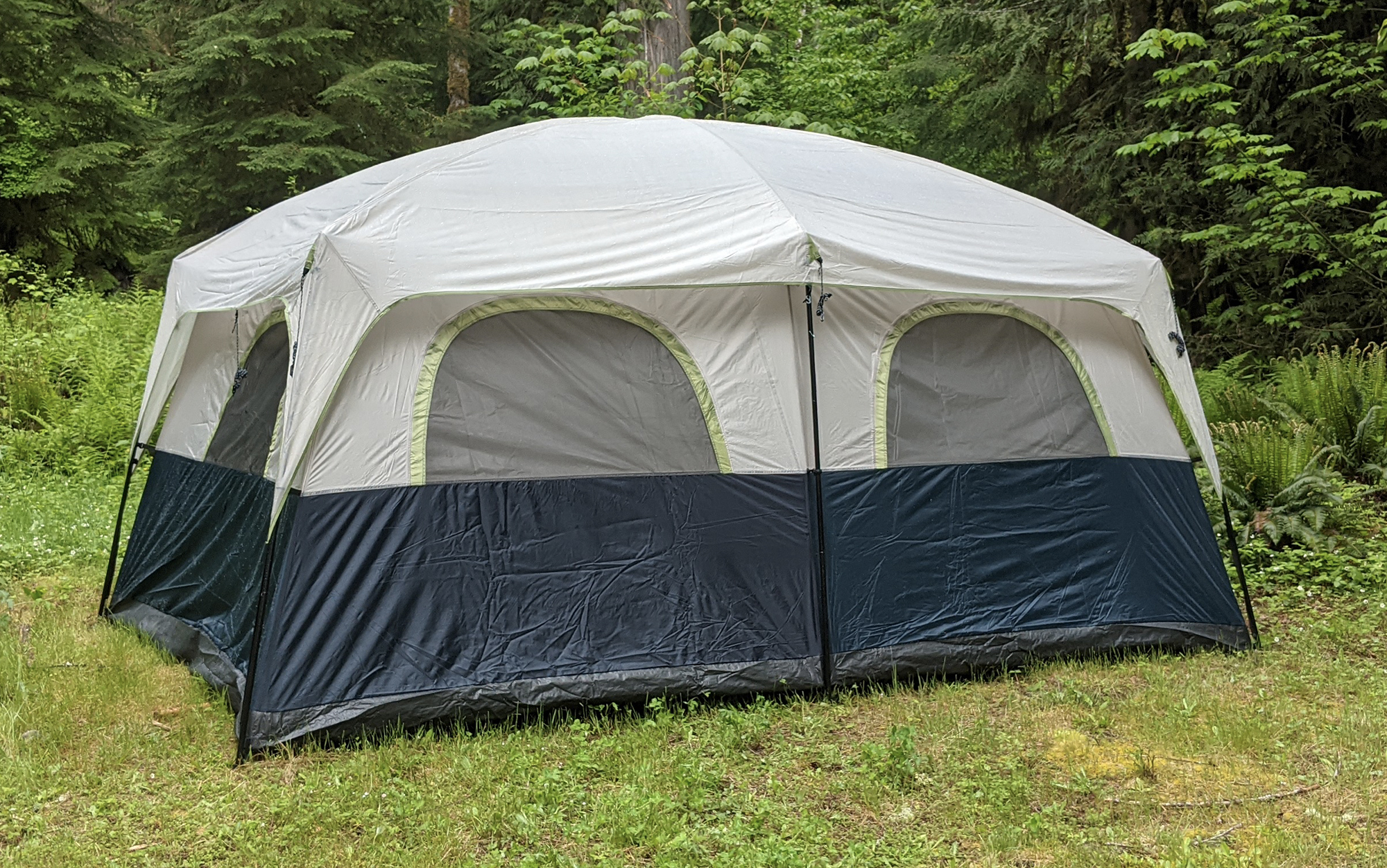 I’ve now set up essentially three identical versions of this tent — the Bass Pro Shop 10-Person Cabin, the Ozark Trail Family Cabin Tent, and the Core 10-Person Family Camping Tent. If you decide to get this tent, go with whichever is least expensive. There is virtually no difference between them.