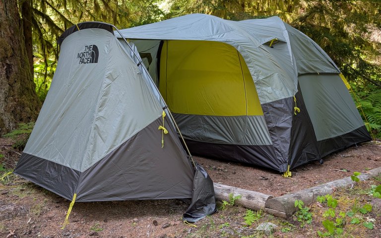 If there is one tent that I’d choose to bring along for a long weekend of camping, it’s The North Face Wawona. I tested the 6-person version of this tent and found it to be incredibly spacious for my family of three, with excellent head height throughout the tent. But what really stands out about this version of the tent is its vestibule. This thing is massive. It has plenty of space to help a kid do a quick clothing change in the middle of the day without needing to take off shoes to head inside the tent. It was so big we ended up leaving one of the best camping chairs set up in the vestibule, handy for stashing coats or sitting down to tie up shoes for a quick day hike.