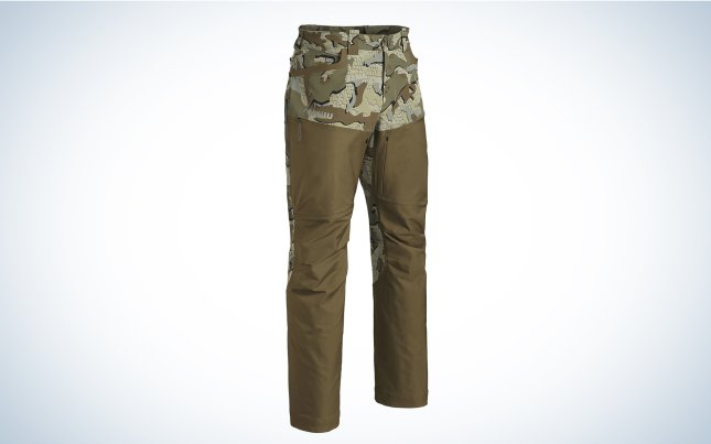 Kuiu Pro Brush pants are ideal for hunters who need to beat feet through rough terrain. You’ll get an excellent fit, bonus features like zippered ventilation and Makspec odor control, and your choice of Kuiu’s proven camouflage patterns. These versatile pants combine toughness and athleticism to land the best overall pick on this list.