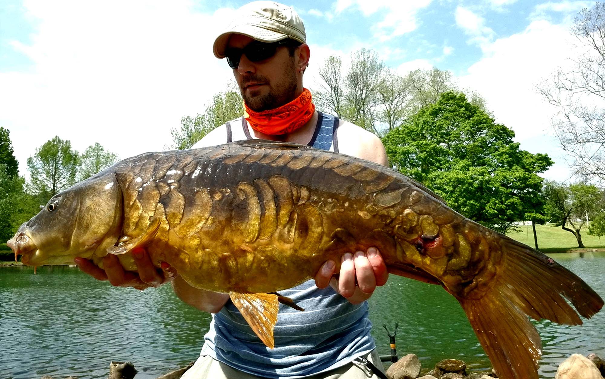 The common carp is the most prolific and likely carp you’ll encounter. There are a number of other interesting and unique looking variations, most notably the mirror carp and the leather carp. However, most carp species descend from the classic common, even the brilliantly colored and highly prized Koi. That said, you could also luck into a Grass Carp (White Amur) or a species of Buffalo (a native fish and not actually a carp), both of which are strong in both resemblance and angling quality.