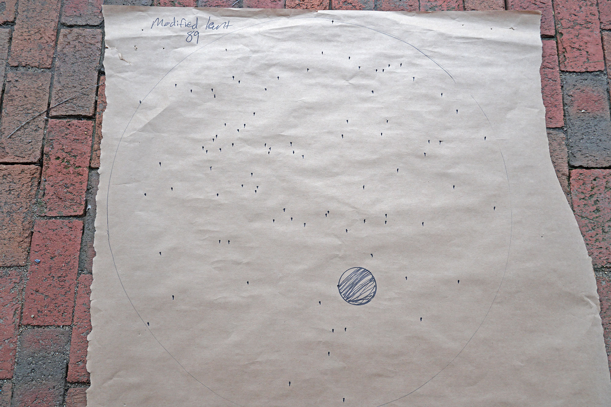 - Patterning Procedure: I shot six patterns with each choke, shooting the two loads per choke three times. For each pattern, I counted the number of pellet strikes within a 30-inch circle that covered the heart of the pattern. I then averaged the number of pellet strikes with each choke/load combination.