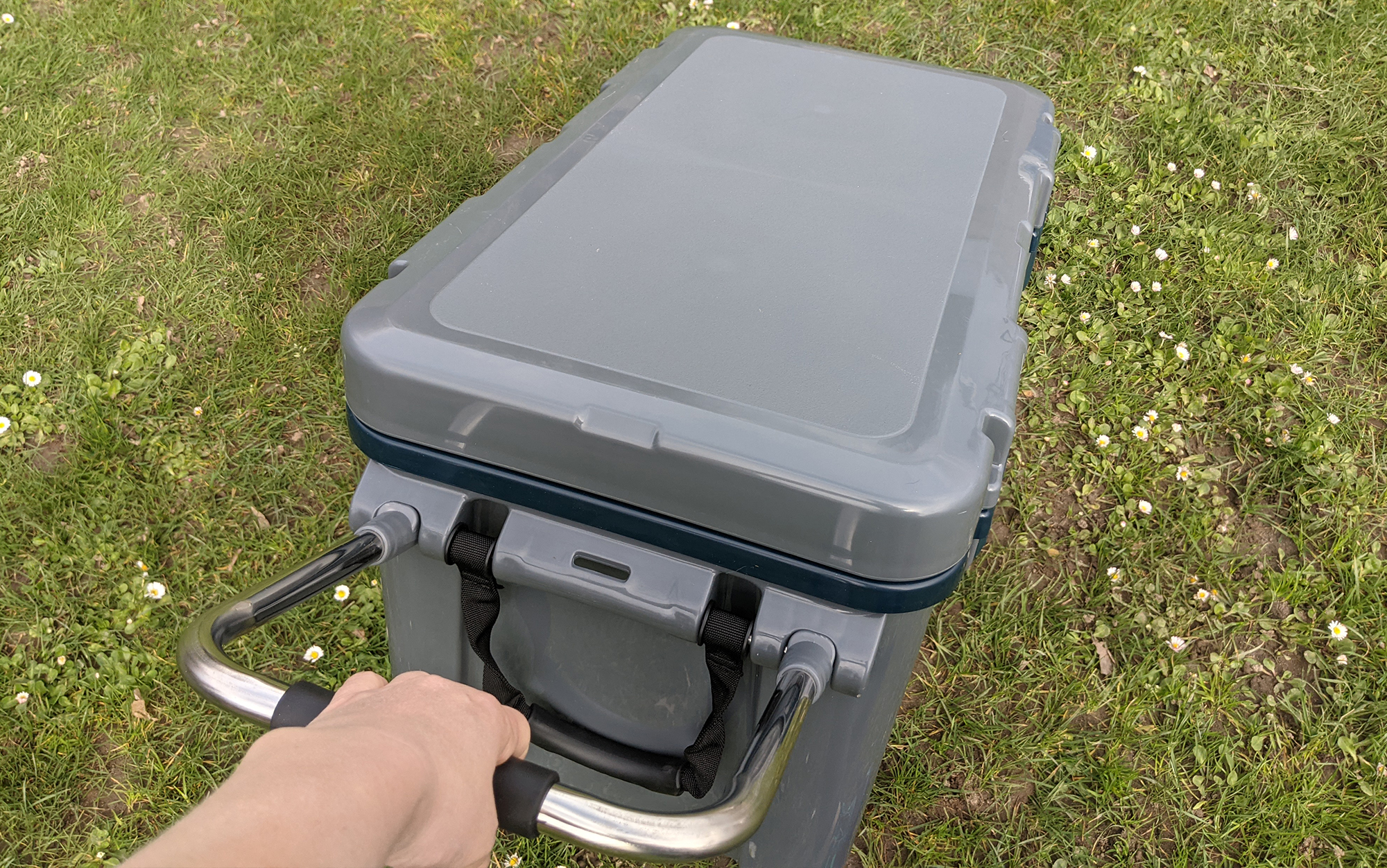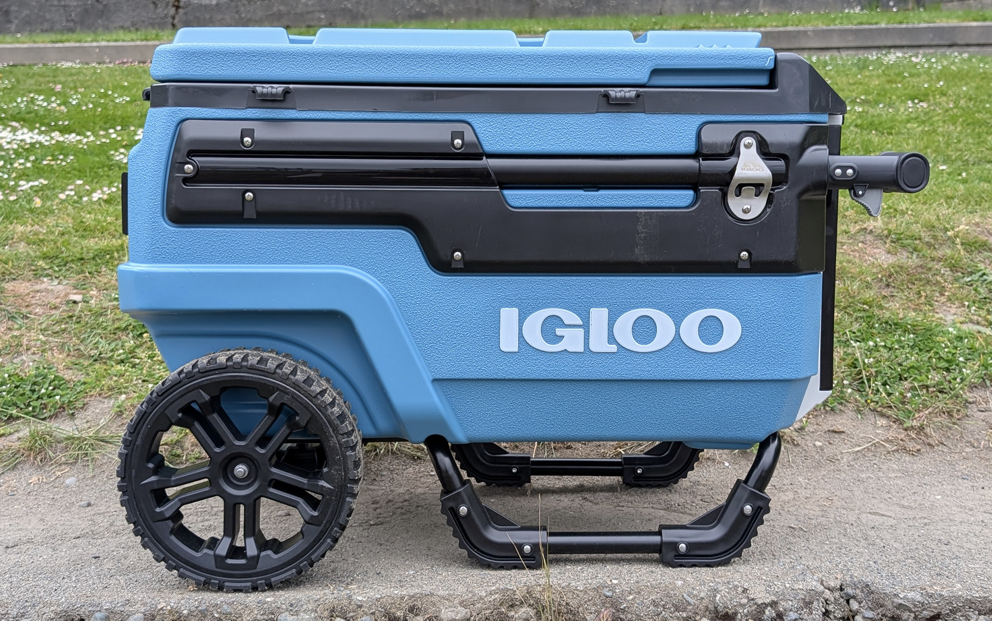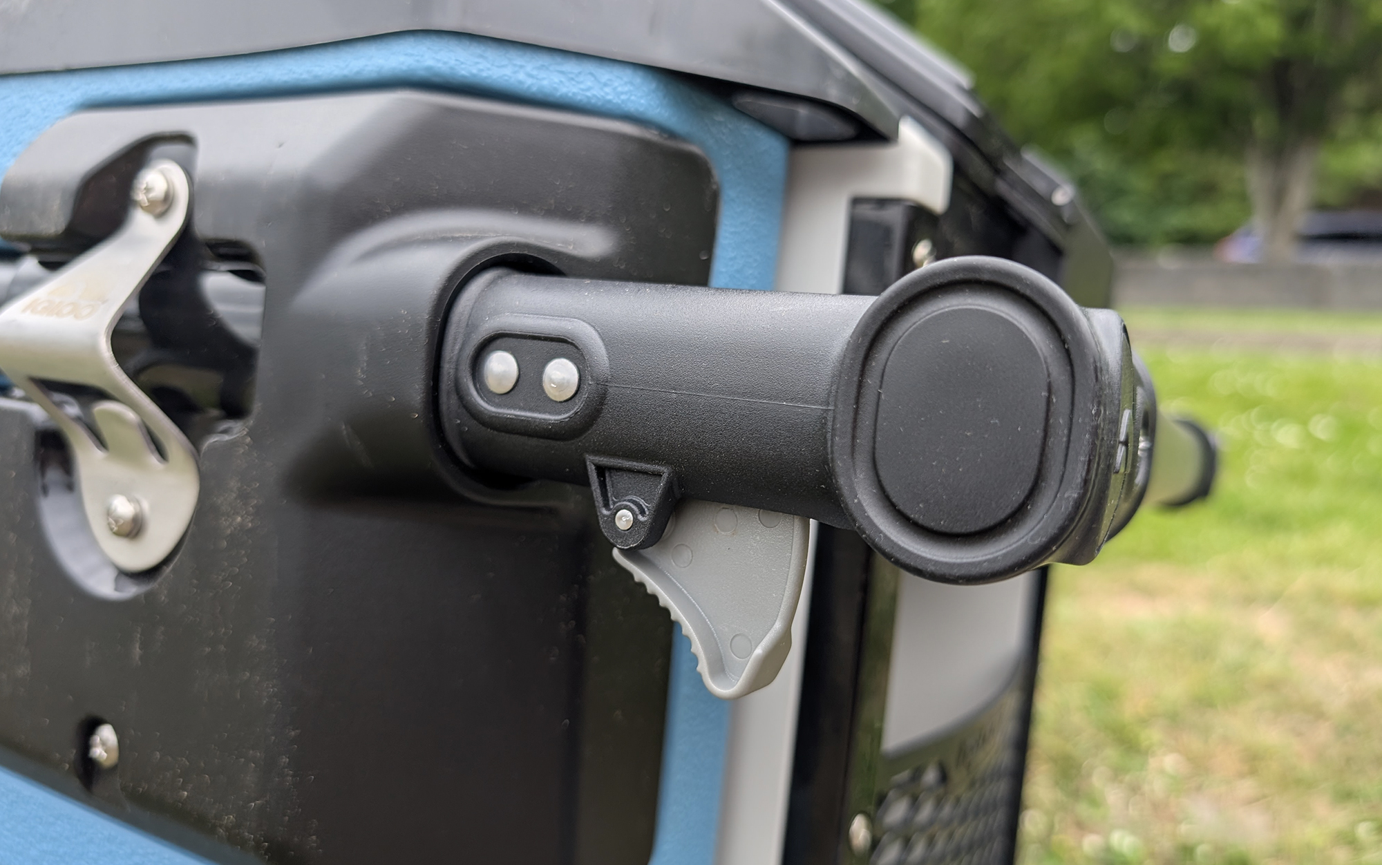 My favorite aspect of this particular wheeled cooler was its telescoping handle. Every other wheeled cooler I’ve tested that had a handle on the side of the cooler, rather than the back, has been too short, so that I’m hunched over or otherwise uncomfortable while lugging around a heavy cooler. But this handle gave me the leverage I wanted. And while the wheels weren’t my favorite in the test (that goes to the excellent RovR RollR), they were entirely serviceable and handled my obstacle course just fine.