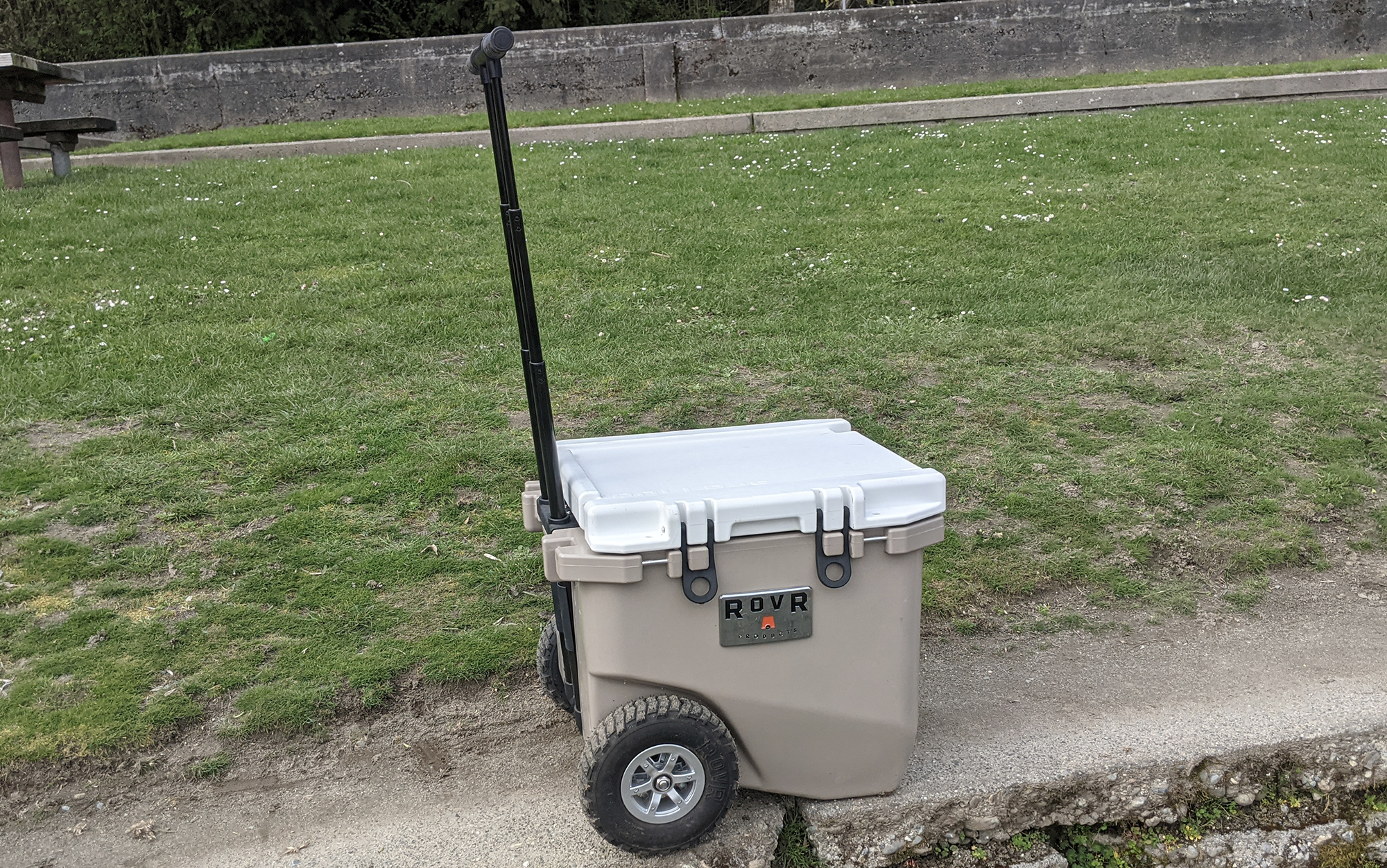 I’ll be honest, most of the wheels on wheeled coolers are a little lackluster. They’re mostly made from plastic, and often not even very good plastic. But that wasn’t the case with the RovR RollR. These tires are made from rubber, they are inflated, and they have serious traction. Over my test course, the RollR bopped around with ease; it was a joy to pull and fun to use. The telescoping handle is both sturdy and lengthy, which dramatically increases leverage, and the tight compact size of the 45 liter model was the opposite of unwieldy. If you’re looking at dragging a cooler across a quarter mile of beach or to a tough to get to dispersed camping site, this is a must-have.