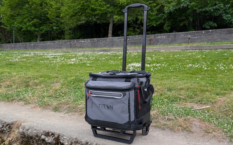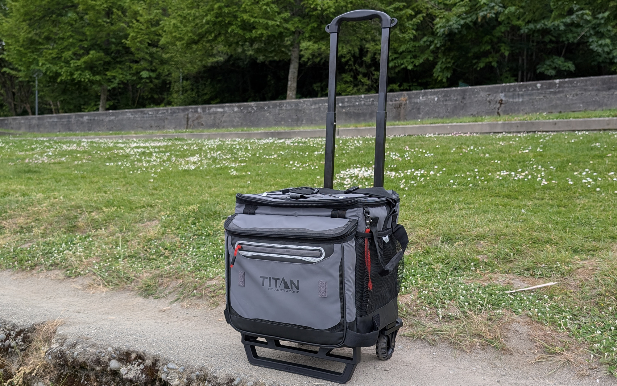 If you need your wheeled cooler to do a little less, and cost a lot less, than other picks on this list, then the Titan 60 Can Wheeled Cooler is one that is worth looking at. While its wheels are not suitable for rugged ground or even a beach (I was effectively dragging it across certain sections of my testing circuit), they’ll take you across the parking lot and along the sidewalk to your picnic table just fine.