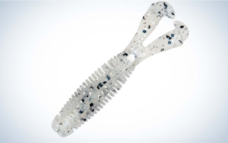 Among the most versatile bait shapes available today, the 1.75-inch Micro GOAT features a ribbed body that produces a continuous underwater bubble trail. Its slightly flattened body allows for easy jighead rigging with a Micro Finesse ShroomZ or Micro Shad HeadZ jighead. The bait can be rigged “flat,” so its twin legs kick and undulate, attracting crappies under a bobber or cast and jigged at different depths. But you can also fish the Micro GOAT like a double tail swimbait, rigging it vertically, one leg on top of the other. Either way, this is a remarkable little crappie snack that fishes fast, slow or in between.