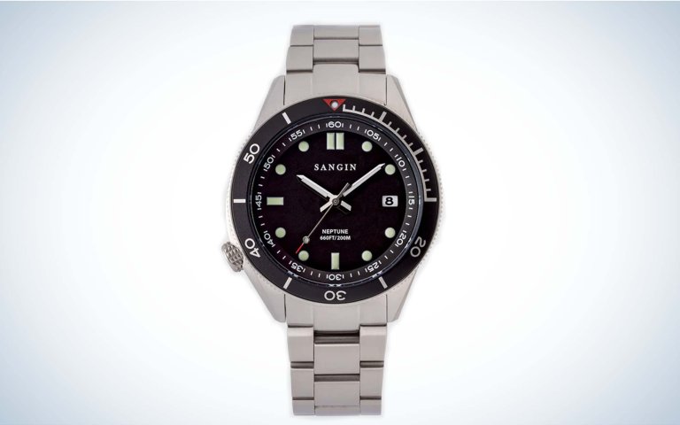 The MARSOC raider-founded Sangin Instruments offers several watches, but the Neptune is their flagship diver. It comes in at under $1,000 with a SEIKO automatic movement and a rubber dive strap. They also offer it on a bracelet.