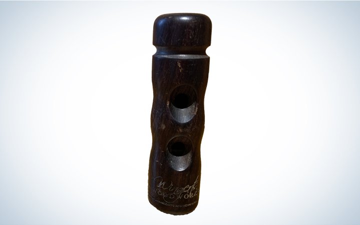 The Hybrid Double-Shot is a $65 call built by champion duck and goose caller Field Hudnall and his brother Clay—a tough price to beat if you’re a beginner or intermediate caller looking for affordability. The mouthpiece is Osage, so you get the soft sounds of a wood call. But the insert is polymer, which adds a bit of volume when you need to reach out to tall ducks. A double-reed, the Double Shot takes less air pressure to blow than a single. That’s helpful if you struggle to draw air from your diaphragm—the main hurdle most new callers face. It’s a little squeaky and flat when you lean on the Hybrid hard and try to run it fast—the price of buying a price point call. If you want more from your call, Field Proven makes the single-reed Single Shot and Shot Caller.