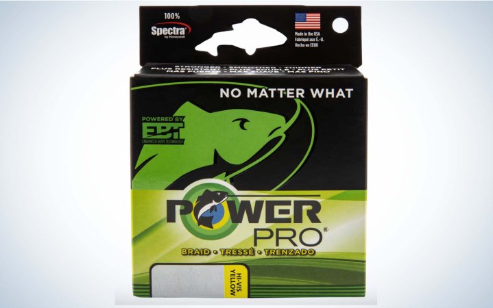In my 30 years fishing Maxima Ultragreen the knot and break strength have been impressive. It’s the strongest, most reliable monofilament line I’ve used. It shines in scenarios where line stretch and flotation are desired, such as casting light jigs in shallow water. Moreover, for fishing in clear water, especially around vegetation, Maxima Ultragreen’s moss-like tint is one of the least visible lines I’ve seen, fluorocarbon included. If you prefer a high-vis monofilament for line watching, consider Maxima’s HV, offered in 6- to 40-pound test.