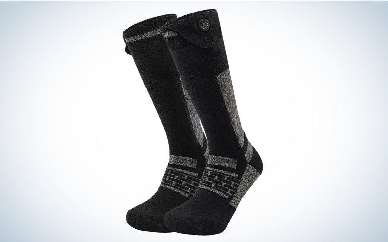These heated socks from iHood were the warmest in my test. The 360 degree heating element wraps around the forefoot keeping your entire foot warm. These socks are also Bluetooth compatible and can be controlled by a button on the sock which also displays the battery level. The app allows you to control the temperature in 21 increments spanning 86 to 158 degrees. The three settings available on the physical button are also shown separately in the app as 104, 122, and 140 degrees Fahrenheit. There is a flash heat feature that turns the socks all the way up for 10 minutes, then turns off automatically. You can also set the socks to turn off on a timer up to 120 minutes later. The Warm Uping app also shows each sock’s perspective battery life. The iHood heated socks are warm, convenient to use, and not too expensive at $90 full price. If you’re looking for an all-activity sock that’s comfy enough to wear around the house, check out the iHood. —Ashley Thess
