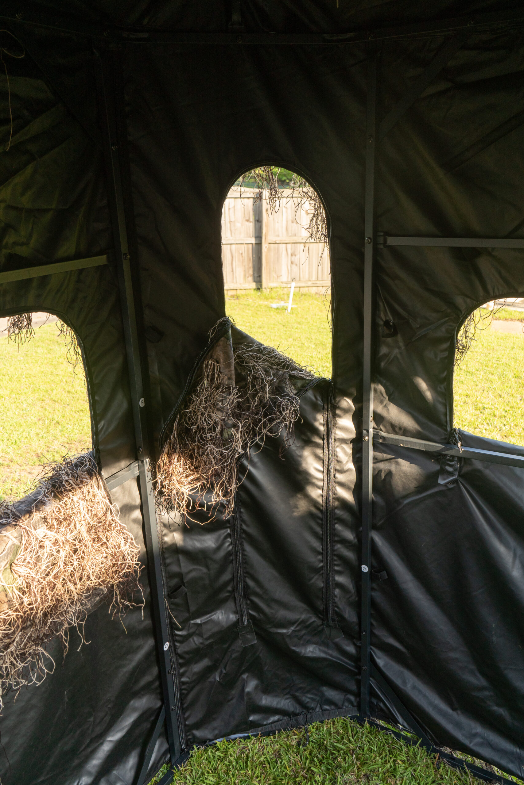 The zippered door is loud—loud enough to make you wince in pre-dawn silence. The windows are a little better, but still noisy. If you’re trying not to spook every deer in the county, it’s best to just leave everything unzipped through hunting season.