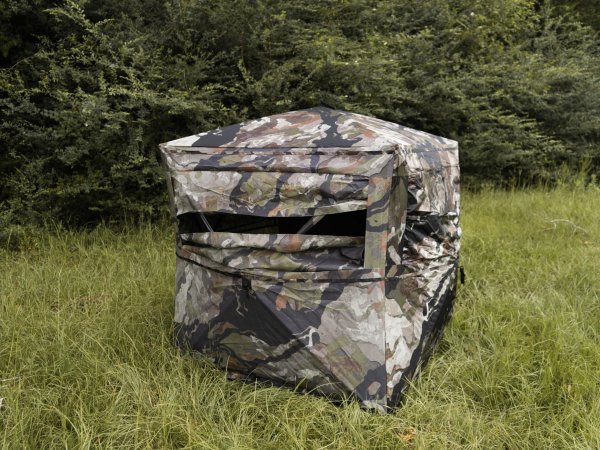 Its generous inner dimensions (70 x 70 x 80 inches) leave plenty of room for two hunters plus gear. With windows on every side and in every corner, this blind offers a variety of shot options for bow or gun hunters.