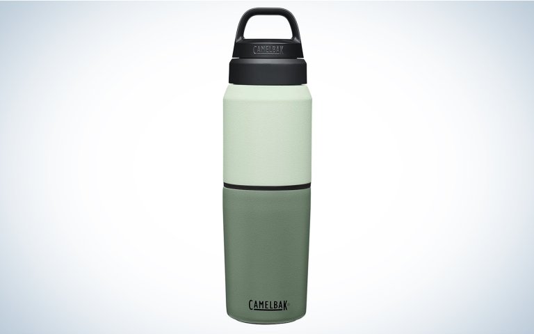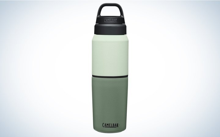 The CamelBak MultiBev is a unique, multi-use insulated bottle. There’s a screw-off cup with a corresponding lid conveniently stored in the bottle’s cap. It can insulate hot and cold beverages. Drinks will stay cold for 24 hours and stay hot for 16. In the ice water test, the MultiBev blew other models out of the water. There was still some ice after 26 hours and it read some of the coldest temperatures throughout the testing period.
