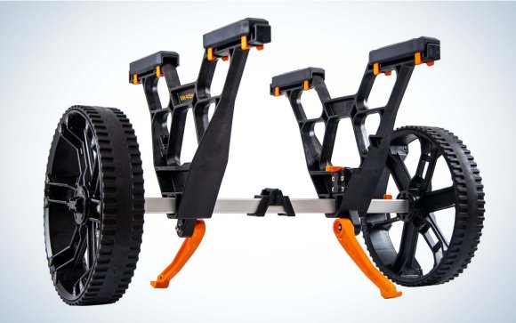 From top to bottom, the Heavy Duty Kayak Kart is designed to take a beating while continuing to function smoothly. Its airless wheels are durable and have good tread for covering a variety of terrain. Capable of hauling up to 450 pounds of kayak and gear, this cart is a workhorse. While it faces much more competition these days, the Wilderness Systems Heavy Duty Kart is still the market standard for universal kayak carts.