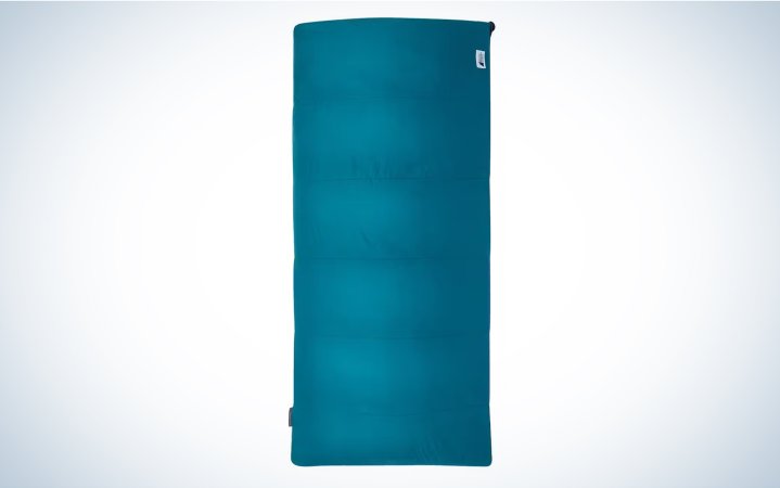 After trying out several different styles of sleeping bags with my kid, it’s clear that quilts—not sleeping bags—make for a better, less interrupted sleep experience for everyone. If you’re new to quilts, here’s the rundown: Quilts are essentially puffy blankets that attach directly to a sleeping pad. That means your kid won’t roll off the pad in the middle of the night. Because the edge of the sleeping bag is by the edge of the sleeping pad, this also means that there is more surface area for kids to roll around in, lessening the feeling of claustrophobia compared to more traditional sleeping bags. To kids, they feel a lot like sleeping under a regular blanket—but this one will actually stay on top of your kid all night long.