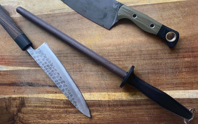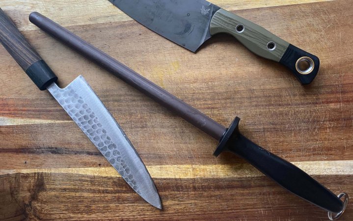 But they’re not the best knife sharpener for every job. On my knives made from high-rockwell stainless steels, I prefer an electric sharpener to repair chips and diamond stones for general maintenance. And sometimes, getting the whetstones prepped is a pain. So I’ll reach for a honing rod to quickly get a blade ready to cut, sorry dad.